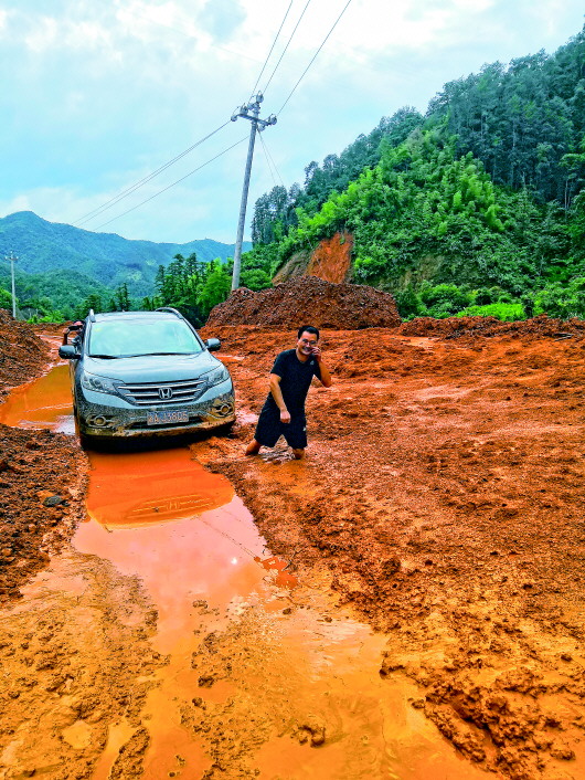 ▲瑤山突發泥石流,付昭成步行前往貧困戶家走訪。