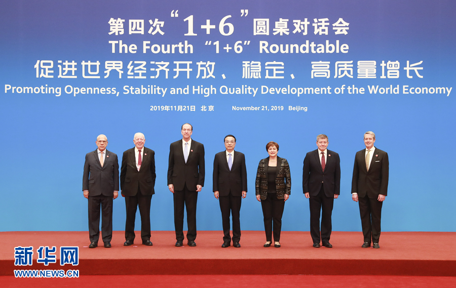 新華社北京11月21日電? 國務院總理李克強21日上午在釣魚臺國賓館同世界銀行行長馬爾帕斯、國際貨幣基金組織總裁格奧爾基耶娃、世界貿易組織副總干事沃爾夫、國際勞工組織總干事賴德、經濟合作與發展組織秘書長古里亞和金融穩定理事會主席夸爾斯舉行第四次“1+6”圓桌對話會。會議圍繞“促進世界經濟開放、穩定、高質量增長”的主題,就優化營商環境和推進更高水平開放等議題深入交流。