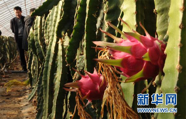 室外-5℃,位于河北省平泉市黃土梁子鎮的中國北方火龍果產業示范園大棚內卻溫潤如春,鮮果飄香。新華網 張朝華攝