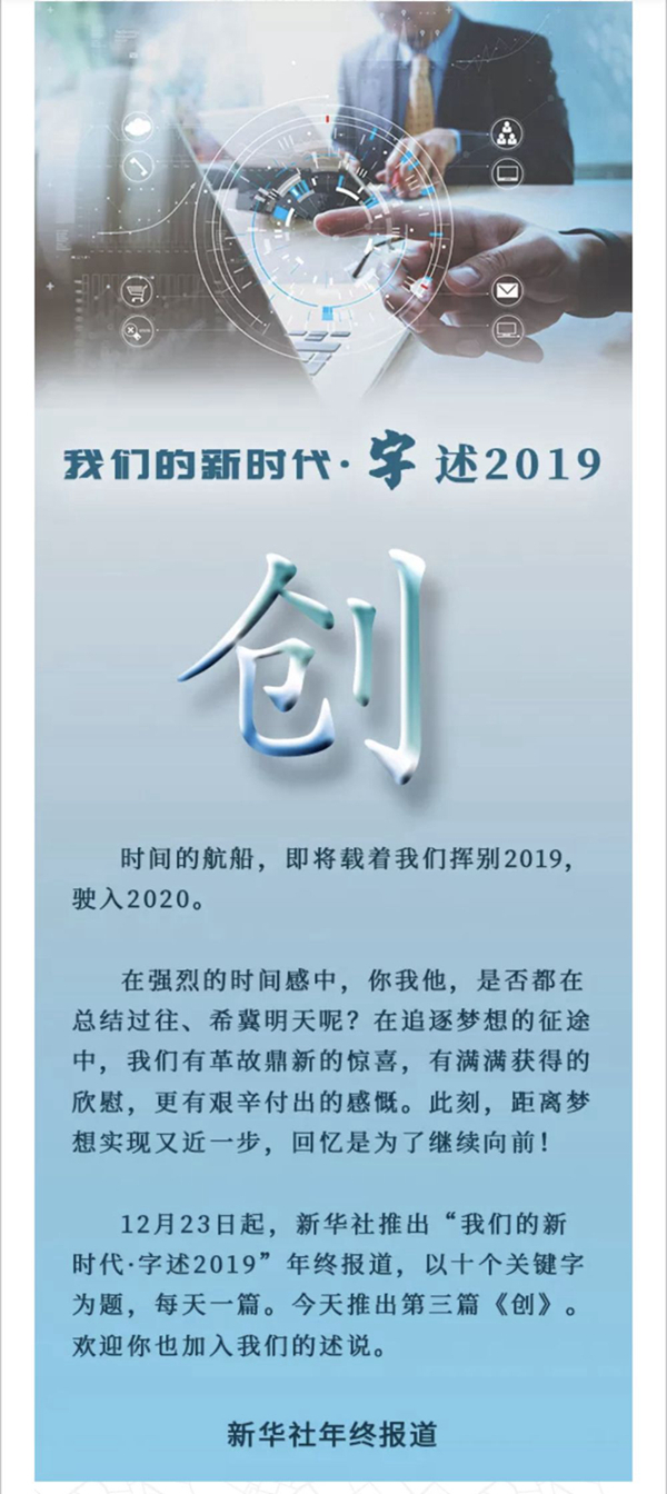 鴻蒙初辟,天地始開。不經一番篳路藍縷,哪來春華秋實?不信你看,創新路上,載人航天再飛天,大興機場始展翅,國產航母初入列……2019一個個“中國創造”,向世人展示大國創新的萬千氣象!