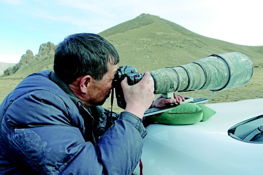 原來,那是鮑永清的“洞”。他悄聲告訴記者,現(xiàn)在一看見雪豹,自己還渾身發(fā)抖,就是頭一次拍雪豹落下的病根。