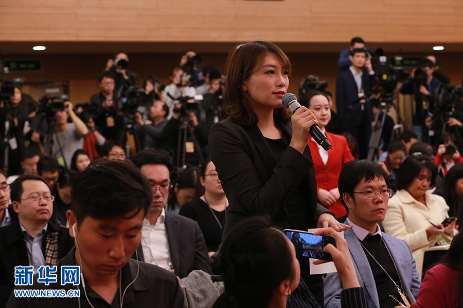 十三屆全國人大二次會議新聞中心于3月6日(星期三)上午10時在梅地亞中心新聞發布廳舉行記者會,邀請國家發展改革委主任何立峰,副主任寧吉喆、連維良就“大力推動經濟高質量發展”相關問題回答中外記者的提問。圖為中央廣播電視總臺央視記者提問。新華網/中國政府網 馬娟 攝