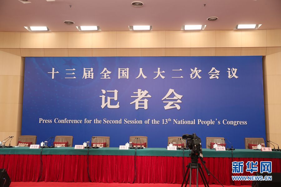 十三屆全國人大二次會議新聞中心3月9日在梅地亞中心新聞發(fā)布廳舉行記者會,邀請全國人大農(nóng)業(yè)與農(nóng)村委員會主任委員陳錫文、全國人大財政經(jīng)濟委員會副主任委員烏日圖、全國人大常委會法制工作委員會副主任劉俊臣、全國人大常委會法制工作委員會副主任許安標(biāo)、全國人大環(huán)境與資源保護委員會委員程立峰就“人大立法工作”相關(guān)問題回答記者提問。圖為記者會現(xiàn)場。新華網(wǎng)/中國政府網(wǎng) 陳杰 攝