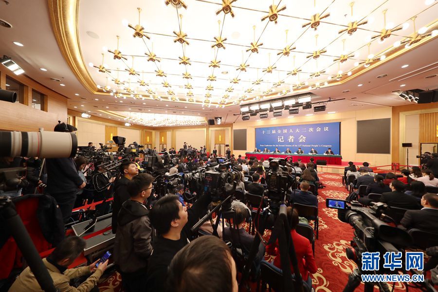 十三屆全國人大二次會(huì)議新聞中心3月9日在梅地亞中心新聞發(fā)布廳舉行記者會(huì),邀請(qǐng)全國人大農(nóng)業(yè)與農(nóng)村委員會(huì)主任委員陳錫文、全國人大財(cái)政經(jīng)濟(jì)委員會(huì)副主任委員烏日?qǐng)D、全國人大常委會(huì)法制工作委員會(huì)副主任劉俊臣、全國人大常委會(huì)法制工作委員會(huì)副主任許安標(biāo)、全國人大環(huán)境與資源保護(hù)委員會(huì)委員程立峰就“人大立法工作”相關(guān)問題回答記者提問。圖為記者會(huì)現(xiàn)場。新華網(wǎng)/中國政府網(wǎng) 陳杰 攝
