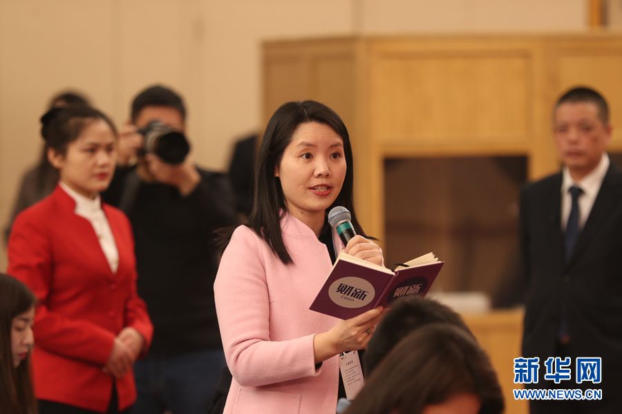 十三屆全國人大二次會議新聞中心3月9日在梅地亞中心新聞發布廳舉行記者會,邀請全國人大農業與農村委員會主任委員陳錫文、全國人大財政經濟委員會副主任委員烏日圖、全國人大常委會法制工作委員會副主任劉俊臣、全國人大常委會法制工作委員會副主任許安標、全國人大環境與資源保護委員會委員程立峰就“人大立法工作”相關問題回答記者提問。圖為財新周刊財新網記者提問。新華網/中國政府網 陳杰 攝