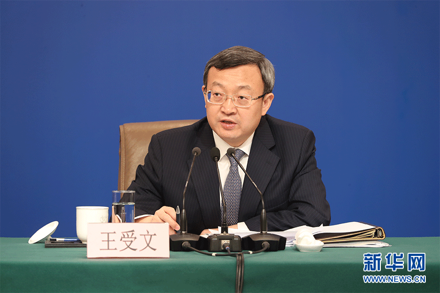 十三屆全國人大二次會議新聞中心3月9日(星期六)10時30分在梅地亞中心新聞發布廳舉行記者會,邀請商務部部長鐘山、副部長兼國際貿易談判副代表王受文、副部長錢克明就“促進形成強大國內市場 推動全方位對外開放”相關問題回答中外記者提問。圖為王受文回答記者提問。新華網/中國政府網 陳杰 攝