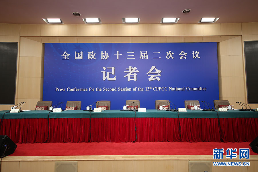 全國政協十三屆二次會議3月10日(星期日)上午8:45在梅地亞兩會新聞中心舉行記者會,邀請5位政協委員就“新時代政協履職”回答記者提問。圖為記者會現場。新華網、中國政府網進行現場直播。新華網/中國政府網 劉廈攝