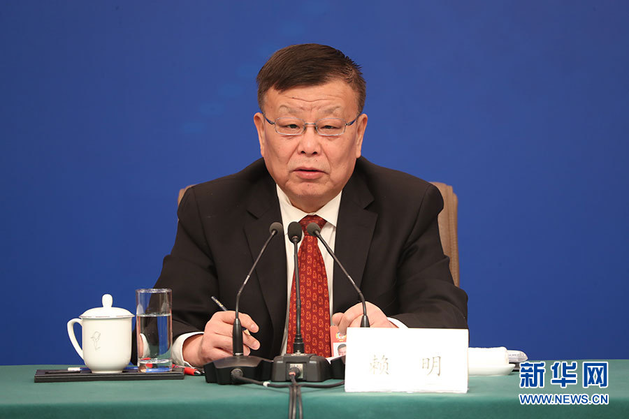 全國政協十三屆二次會議3月10日(星期日)上午8:45在梅地亞兩會新聞中心舉行記者會,邀請5位政協委員就“新時代政協履職”回答記者提問。新華網、中國政府網進行現場直播。圖為全國政協常委、副秘書長(兼)、提案委員會副主任,九三學社中央副主席賴明。新華網/中國政府網 陳杰攝