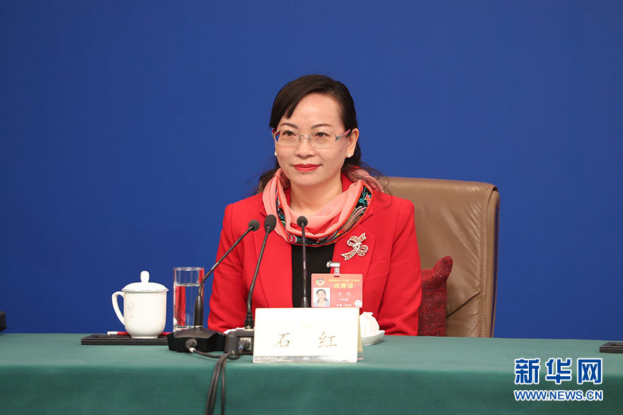 全國政協十三屆二次會議3月10日(星期日)上午8:45在梅地亞兩會新聞中心舉行記者會,邀請5位政協委員就“新時代政協履職”回答記者提問。新華網、中國政府網進行現場直播。圖為全國政協委員、湖南省湘西土家族苗族自治州政協副主席石紅。新華網/中國政府網 陳杰攝