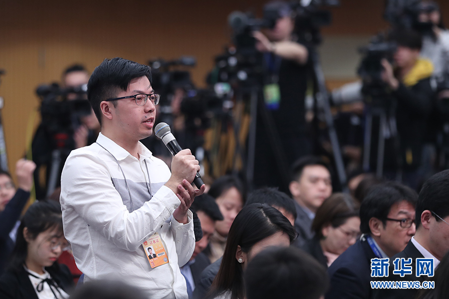 十三屆全國人大二次會議新聞中心3月11日(星期一)10時30分在梅地亞中心新聞發布廳舉行記者會,邀請國家市場監督管理總局局長張茅、國家藥品監督管理局局長焦紅、國家知識產權局局長申長雨就“加強市場監管 維護市場秩序”相關問題回答中外記者提問。圖為南方都市報南方報業全媒體記者提問。新華網/中國政府網 劉廈 攝
