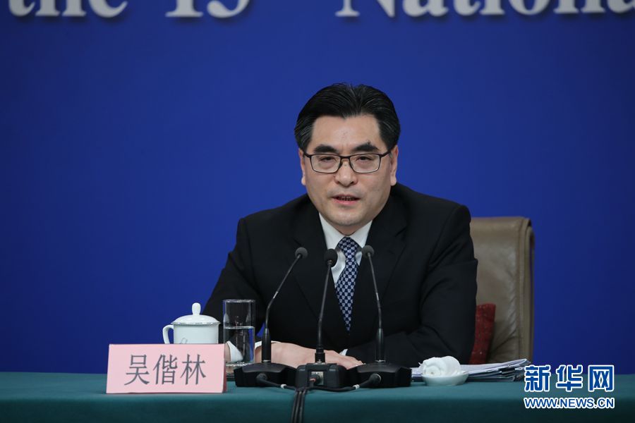 十三屆全國人大二次會議新聞中心于3月12日15時在梅地亞中心新聞發布廳舉行記者會,邀請最高人民法院審判委員會副部級專職委員劉貴祥,福建省高級人民法院院長吳偕林,江西省高級人民法院院長葛曉燕就“攻堅‘基本解決執行難’”相關問題回答中外記者提問。圖為吳偕林回答記者提問。新華網/中國政府網 劉廈攝