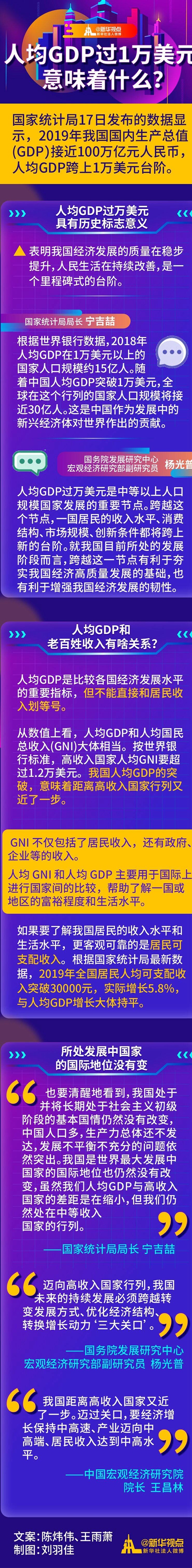 經濟總量接近100萬億元、人均國內生產總值突破1萬美元,國家統計局17日發布的2019年中國經濟成績單,凸顯中國經濟里程碑式的新跨越。