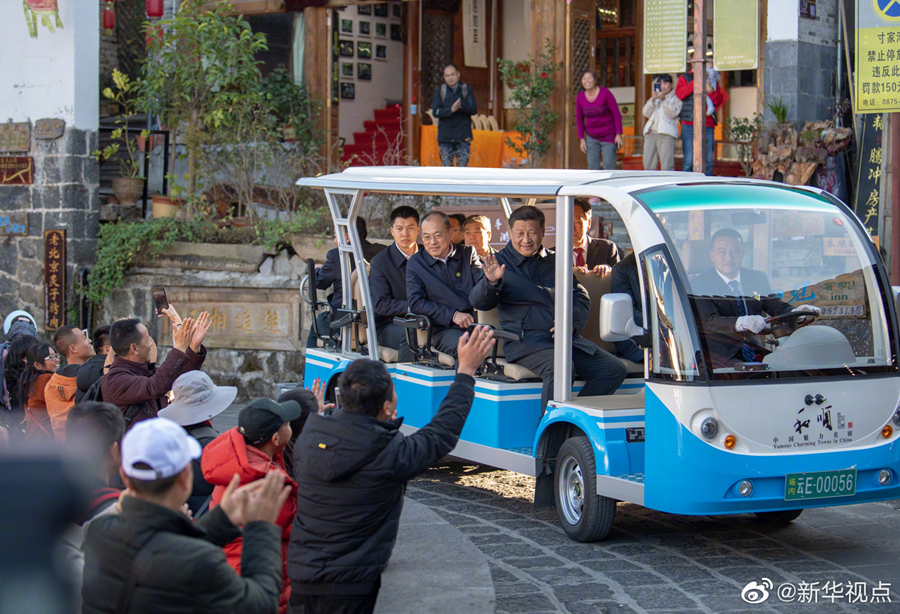 習(xí)近平總書記19日下午前往騰沖和順古鎮(zhèn)考察調(diào)研。他來(lái)到和順圖書館,察看古絲路上崇文尚教的優(yōu)良傳統(tǒng)。他沿著古鎮(zhèn)小巷步行,走進(jìn)“大馬幫博物館”,詳細(xì)了解西南絲路古道歷史和近代以來(lái)騰沖對(duì)外交流史。沿途游客看到總書記,熱情簇?fù)砩蟻?lái),習(xí)近平同他們親切打招呼,詢問(wèn)大家都來(lái)自哪里?在七彩云南走了哪些地方?有游客問(wèn):“習(xí)大大,彭麻麻呢?”總書記笑著回答說(shuō):“沒來(lái)。過(guò)年了都在家里忙著呢!”大家都會(huì)心笑了起來(lái)。古鎮(zhèn)里暖意融融,笑聲陣陣。(文字記者:張曉松、朱基釵 攝影記者:鞠鵬、謝環(huán)馳、燕雁)