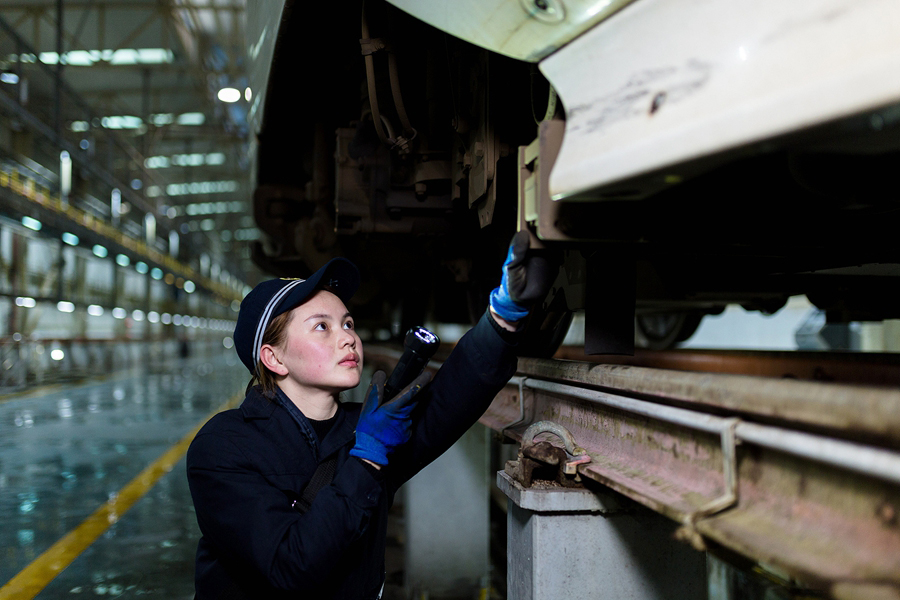 “我們這個崗位最重要的是細心,車底螺絲是否移位、電纜接頭是否松動,不敢放過一個細節,比如說動車底盤的天線,遇到北方冰凍雨雪天氣時,易被冰塊砸出裂紋,如沒及時發現,將會對列車信息傳輸造成直接影響。”向念說。