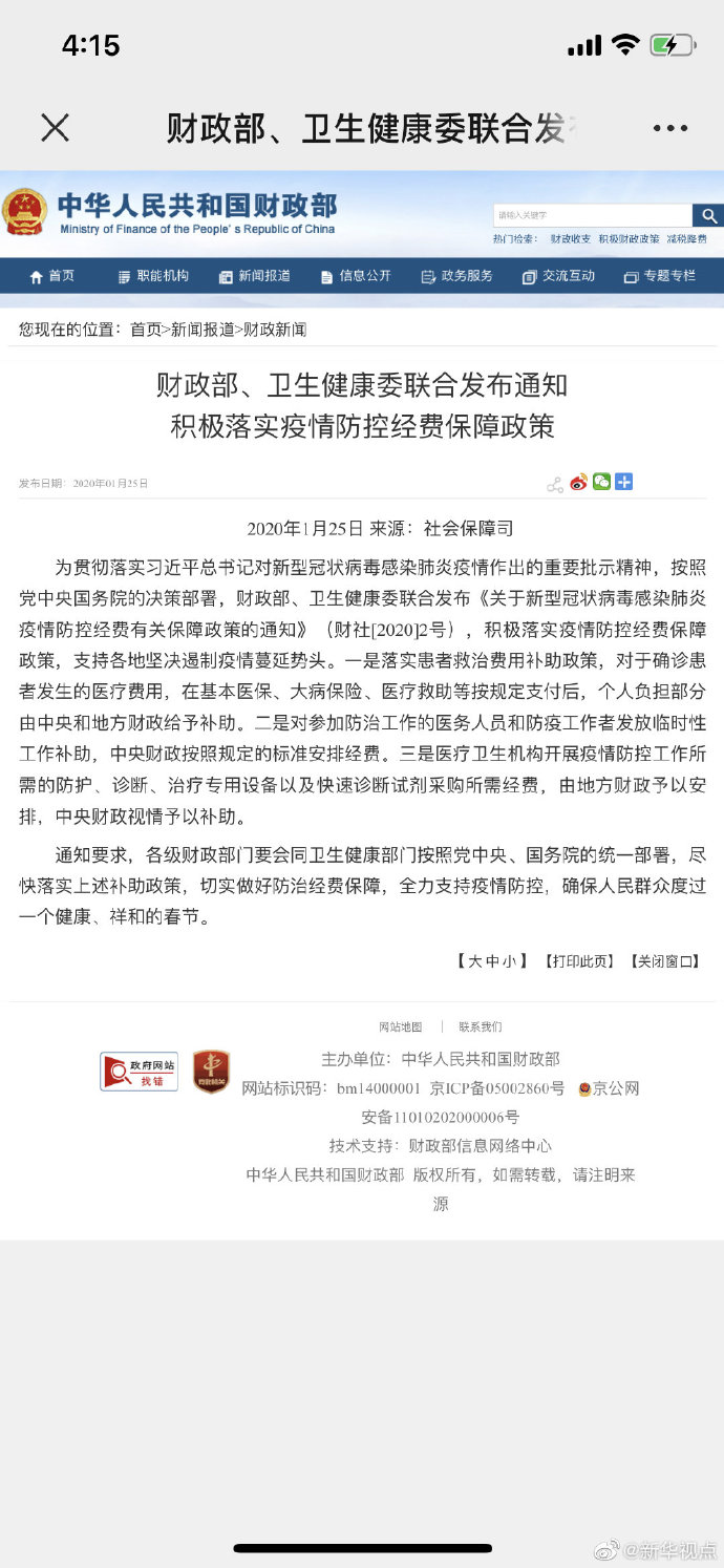 記者25日從財政部獲悉,財政部、衛(wèi)生健康委聯(lián)合發(fā)布通知,對于確診患者發(fā)生的醫(yī)療費用,在基本醫(yī)保、大病保險、醫(yī)療救助等按規(guī)定支付后,個人負(fù)擔(dān)部分由中央和地方財政給予補助。對參加防治工作的醫(yī)務(wù)人員和防疫工作者發(fā)放臨時性工作補助,中央財政按照規(guī)定的標(biāo)準(zhǔn)安排經(jīng)費。醫(yī)療衛(wèi)生機構(gòu)開展疫情防控工作所需的防護(hù)、診斷、治療專用設(shè)備以及快速診斷試劑采購所需經(jīng)費,由地方財政予以安排,中央財政視情予以補助。(記者郁瓊源)