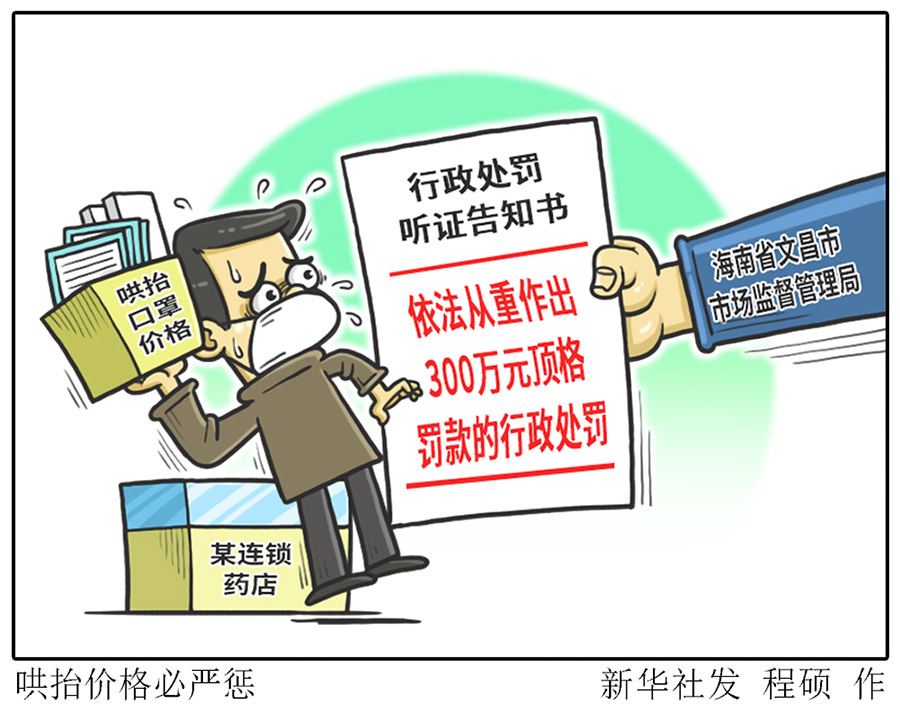新華社海口2月6日電(記者吳茂輝)記者6日從海南省市場監督管理局獲悉,近日,海南一九堂藥品連鎖經營有限公司因哄抬價格,被文昌市市場監督管理局下達《行政處罰聽證告知書》。根據這份告知書,這家公司將被罰300萬元。