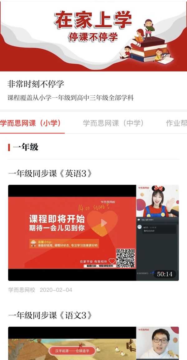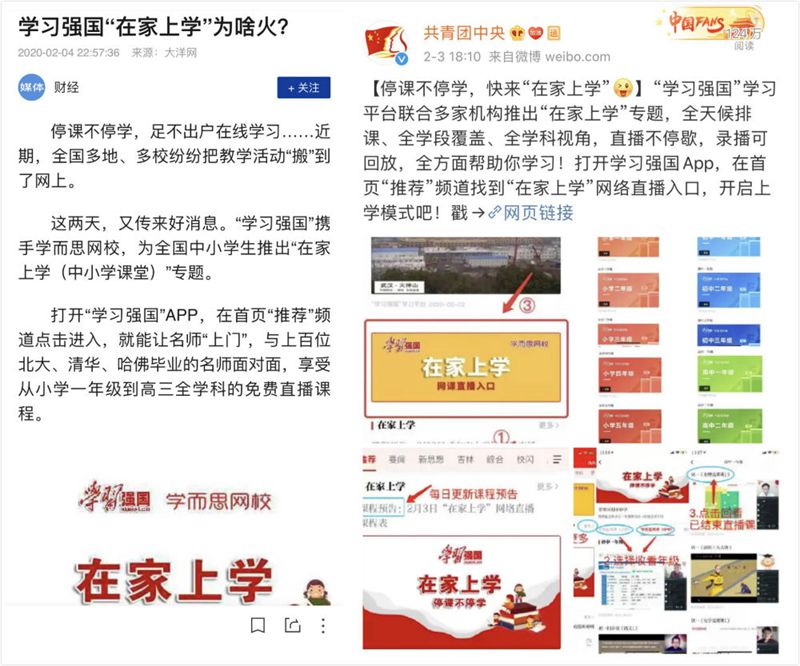 看點2.“在家上學”專區:停課不停學!“學習強國”聯合“學而思”“新東方”“猿輔導”“作業幫”“掌門教育”等多家教育機構,組織上百位北大、清華、哈佛畢業名師,全國特級教師、家庭教育專家、心理學專家為延期開學的中小學生講課,提供從小學一年級到高中三年級全學科、全時段課程,直播、回看兩不誤,實現“停課不停教”“停課不停學”。此外,還有北京101中學、人大附中、清華附中、成都七中、中關村小學等中小學名校上千堂部級優質課程,讓全國各地的孩子們足不出戶就能享受最優質的教育資源。