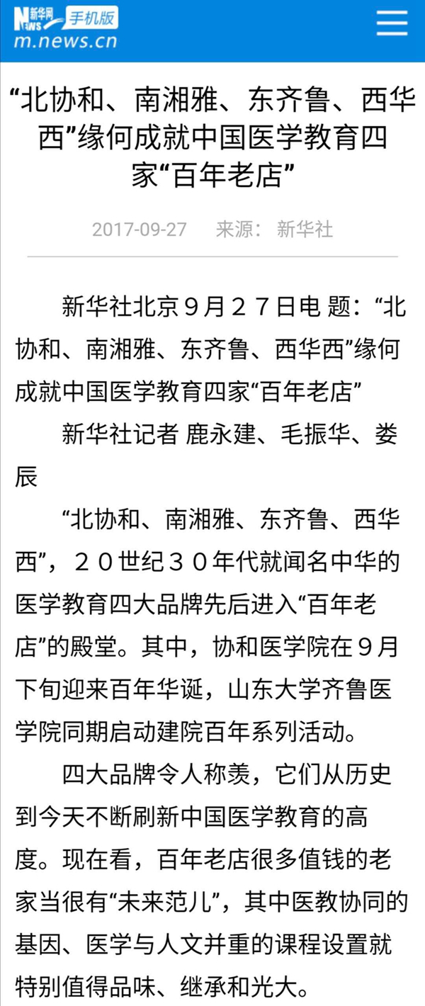 新華社有篇報道把它們稱為中國醫學教育四家“百年老店”,是20世紀30年代就聞名中華的醫學教育四大品牌。它們從歷史到今天不斷刷新中國醫學教育的高度。↓↓↓