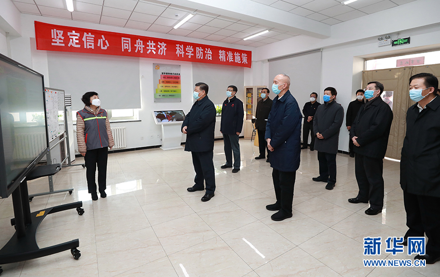 習(xí)近平首先來到北京市朝陽區(qū)安貞街道安華里社區(qū),了解基層一線疫情聯(lián)防聯(lián)控情況。在社區(qū)居民委員會(huì)疫情防控指揮部,習(xí)近平聽取了安貞街道和安華里社區(qū)開展聯(lián)防聯(lián)控情況介紹。習(xí)近平對(duì)社區(qū)采取多項(xiàng)措施,落實(shí)防控責(zé)任,實(shí)現(xiàn)入戶排查、重點(diǎn)群體監(jiān)控“兩個(gè)全覆蓋”等做法表示肯定。他強(qiáng)調(diào),社區(qū)是疫情聯(lián)防聯(lián)控的第一線,也是外防輸入、內(nèi)防擴(kuò)散最有效的防線。把社區(qū)這道防線守住,就能有效切斷疫情擴(kuò)散蔓延的渠道。全國都要充分發(fā)揮社區(qū)在疫情防控中的阻擊作用,把防控力量向社區(qū)下沉,加強(qiáng)社區(qū)各項(xiàng)防控措施的落實(shí),使所有社區(qū)成為疫情防控的堅(jiān)強(qiáng)堡壘。要以疫情防控工作成效來檢驗(yàn)和拓展“不忘初心、牢記使命”主題教育成果,發(fā)揮基層黨組織政治引領(lǐng)作用和黨員先鋒模范作用,把社區(qū)居民發(fā)動(dòng)起來,構(gòu)筑起疫情防控的人民防線。