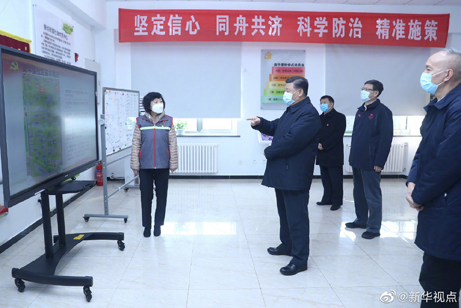 10日下午,習近平總書記來到北京市朝陽區安貞街道安華里社區,實地了解基層一線疫情群防群控等情況,并同在場的社區工作者親切交流。他指出,新冠肺炎疫情防控工作是一場人民戰爭,要相信群眾、發動群眾,充分發揮社區在疫情防控工作中的“阻擊作用”。繼續推進疫情防控阻擊戰,需要充實社區的力量,把社區工作做得更加扎實。干部重心要下移,力量要下沉,支援社區工作,構筑起疫情防控的人民防線。(文字記者張曉松 攝影記者鞠鵬、龐興雷)