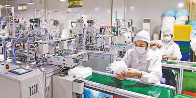 近日,在福建漳州市一家醫療器械公司生產車間內,員工正在逐一清點檢查成品口罩。顏 珂 肖和勇攝影報道