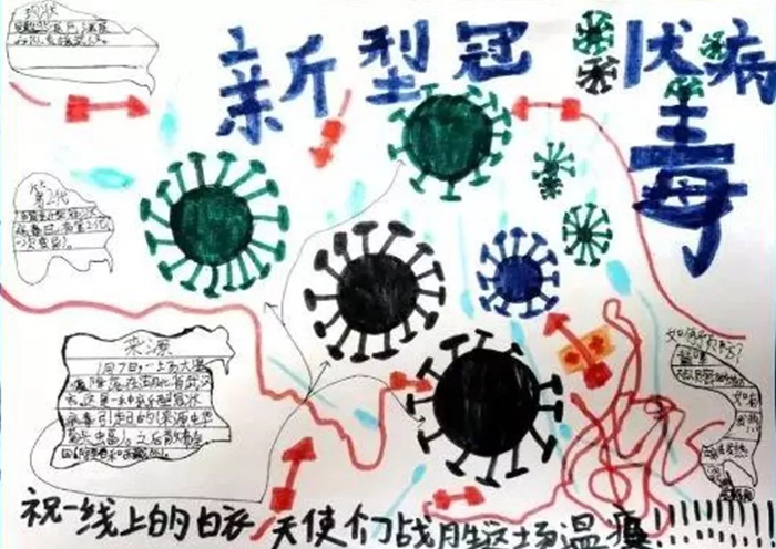 各地兒童也參與到抗疫戰中來,用手中的筆繪制防疫漫畫,寫抗疫詩歌、短文,錄制防疫短視頻,普及防疫知識,為一線醫務工作者加油,為打贏抗疫戰鼓勁。