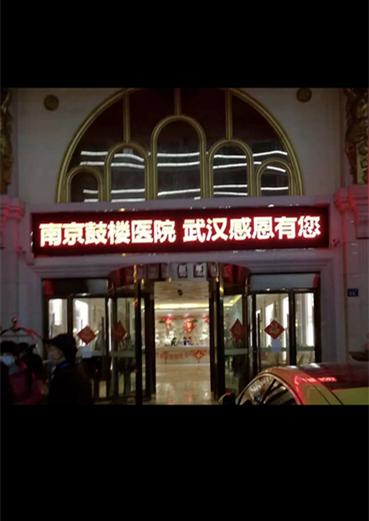 4 輛大巴載著我們駛向酒店,原本繁華的街道冷冷清清,原本擁擠的道路暢通無阻。酒店門口的電子展示屏上滾動著:南京鼓樓醫院,武漢感恩有您!頓時心里感到暖暖的。