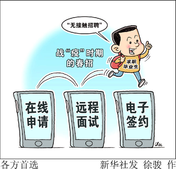 受疫情影響,高校畢業(yè)生求職面臨很多不便。對(duì)此,人社部就業(yè)促進(jìn)司副司長(zhǎng)宋鑫表示,人社部正會(huì)同有關(guān)方面加大線上崗位投送力度,拓展畢業(yè)生擇業(yè)渠道,引導(dǎo)用人單位延長(zhǎng)招聘時(shí)間,千方百計(jì)助力畢業(yè)生平安順利就業(yè)。公共就業(yè)人才服務(wù)機(jī)構(gòu)將延長(zhǎng)報(bào)到接收時(shí)間,盡最大努力為高校畢業(yè)生辦理就業(yè)協(xié)議簽訂和報(bào)到手續(xù)等提供便利。