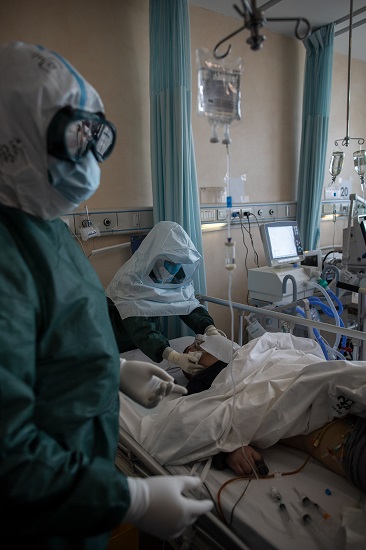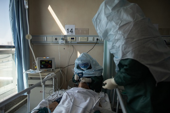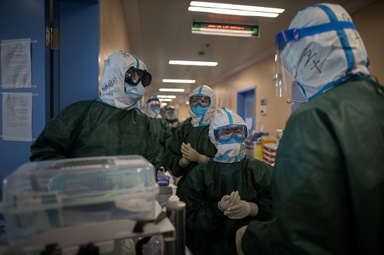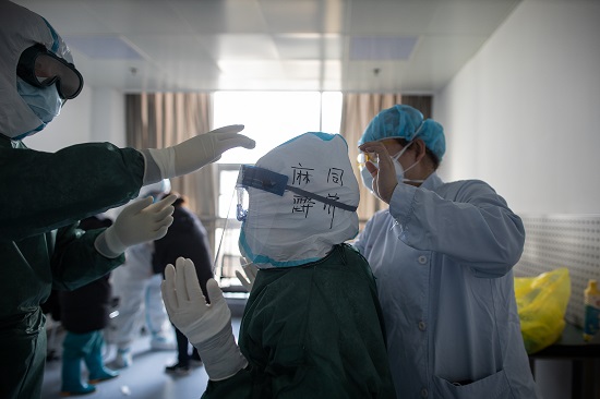 2月20日,同濟醫院光谷院區,即將進ICU的“敢死隊”在穿戴防護裝備。所有人都要經過院感護士的檢查,才能進入隔離區域。