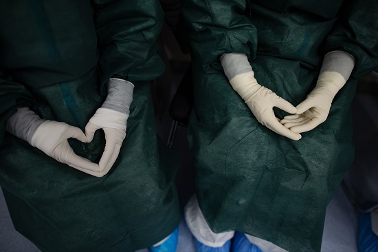 有醫生的手勢是心型,仿佛是在祈禱和祝福。