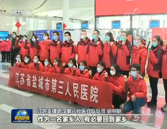 江蘇支援武漢第八批醫療隊隊員 胡明朝:在疫情的關鍵時期,全國人民支持。作為一名家鄉人,有必要回到家鄉,做出我自己的貢獻。