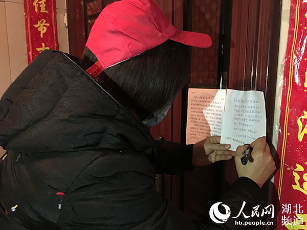 “這是我送給您的,不要錢!” 2月24日下午,湖北省宜昌市夷陵區小溪塔街道轉崗黨員彭玉琴來到金鳳朝陽小區4棟4樓的一家住戶門前,查看了門邊留言條上的內容,掏出筆寫下了這句溫馨留言。