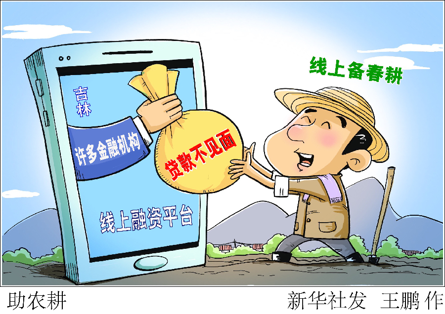 漫畫:助農耕 一邊是為了疫情防控盡量少出門,一邊是農時不等人,急需貸款流轉土地、購買農資,如此“兩難”怎么解?在吉林省,許多金融機構建設了線上融資平臺,農民足不出戶就能用手機辦理貸款。 新華社發 王鵬 作