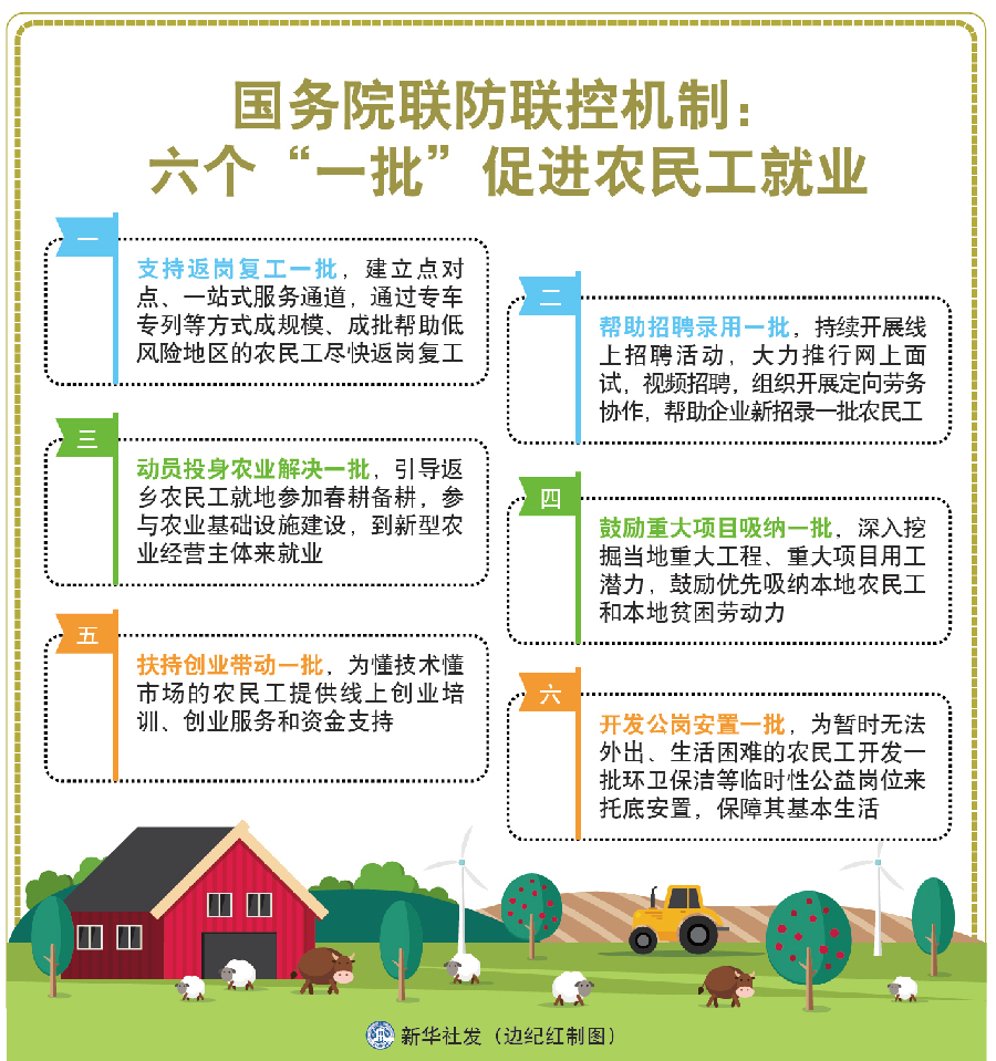 一是支持返崗復工一批,建立點對點、一站式服務通道,通過專車專列等方式成規模、成批幫助低風險地區的農民工盡快返崗復工;