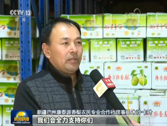 新疆巴州康泰源香梨農民專業合作社理事長 木沙?卡葉:我們與湖北心連心,我們會全力支持你們。