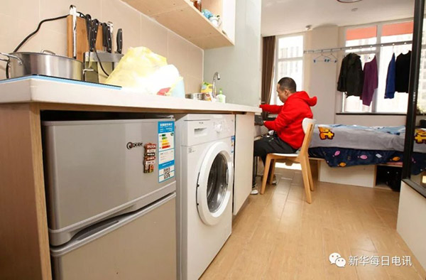 某長租公寓內(nèi),租客李苗在自己的房間內(nèi)吃早飯。新華社記者譚慧婷 攝