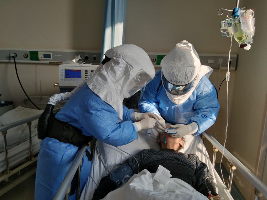 協和西院16層樓800個床位幾乎全部用來收治新冠肺炎病人,醫院的插管需求已經出現井噴。僅僅一個小時,就有十幾位患者預約插管。到院第二天,隊員們甚至沒來得及熟悉環境,就被各個病區的醫生拉入戰場。