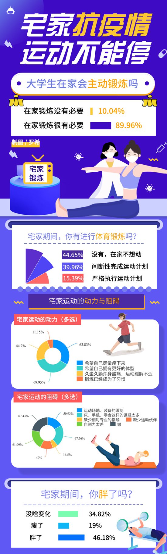 近五成大學生宅家期間變胖,九成運動量低于往常——