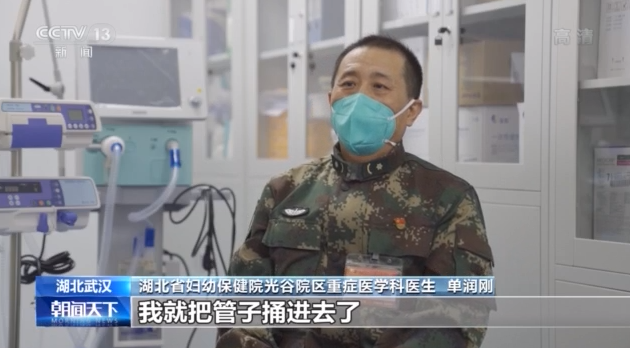 湖北省婦幼保健院光谷院區重癥醫學科醫生、危重癥患者救治突擊隊隊員 單潤剛:我們在吸氣的時候,聲門會變大,變大那一瞬間我就把管子插進去了,也就零點幾秒,不到一秒鐘。