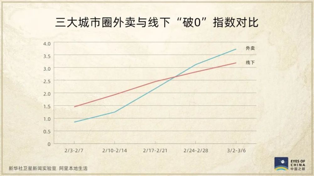 “破0”指數,是根據商家恢復營業獲得首筆收入、復工后的持續營業時間等計算得出,這兩張圖呈現出,在三大城市圈,復工復產并獲得收入的商家不斷增多。