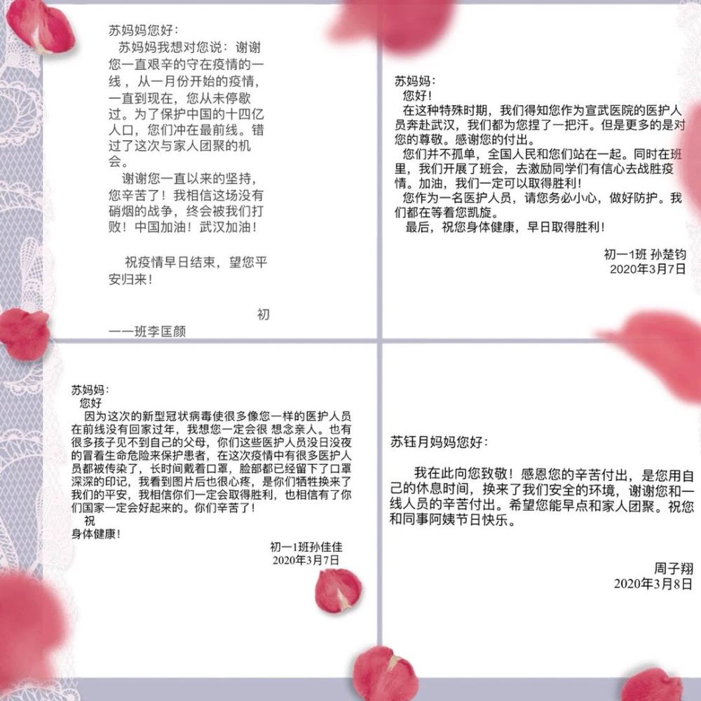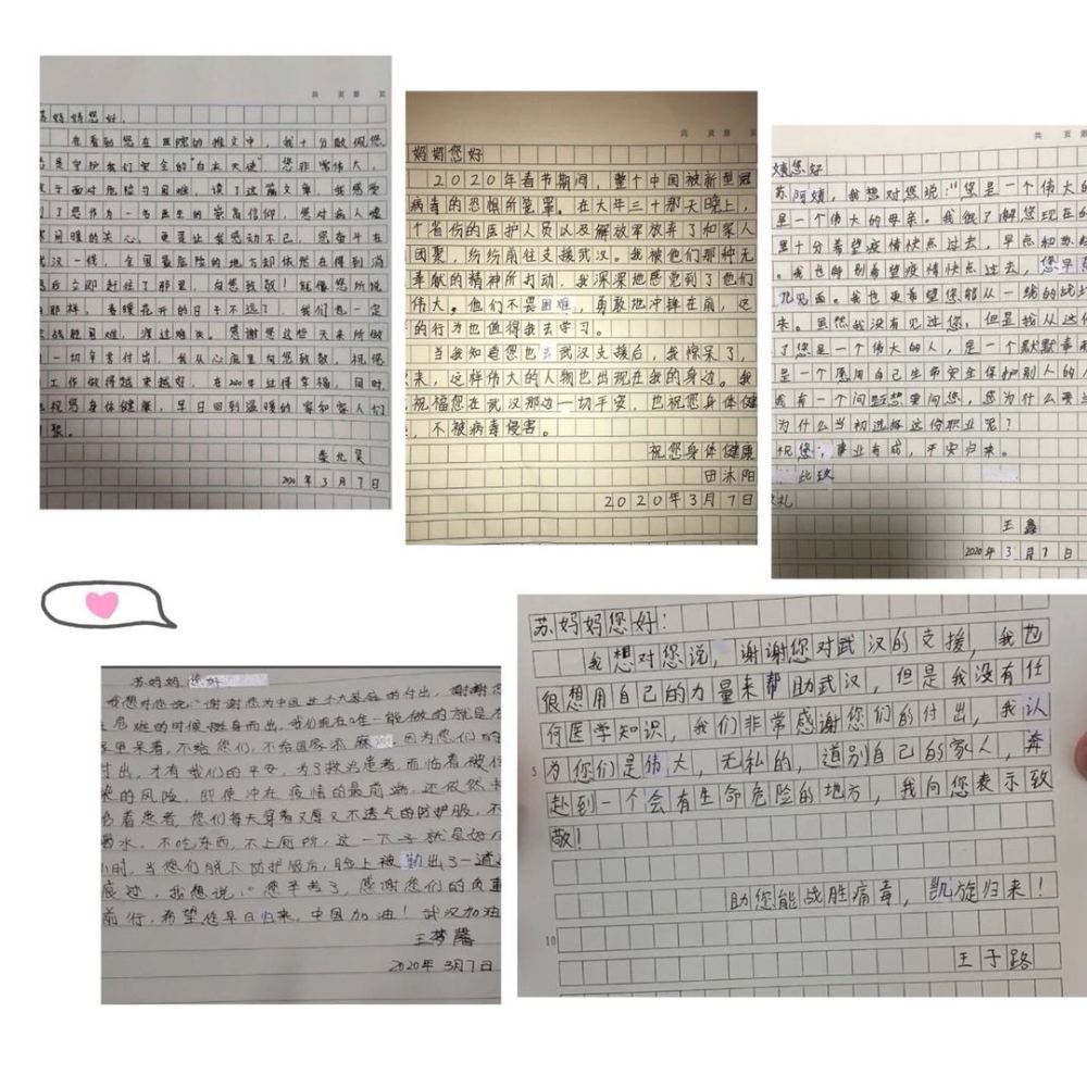 這些孩子們不曾來到武漢,但是他們的來信,對我來說都是一種鼓勵,是我前行的動力。其實在這場戰“疫”中,他們的父母也都和我一樣,在默默地為大家做著自己能做到的一切。他們或許是教師、是警察,或許是公司的普通職員,但他們也都在自己所從事的行業里、在自己的崗位上堅守著。