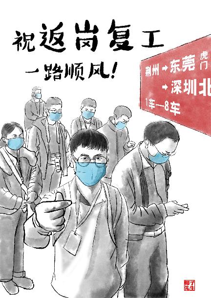 登上返崗專列,回到親切熟悉的工作崗位,趁著春光,只爭朝夕干起來!(文:董璐 手繪:趙凱)