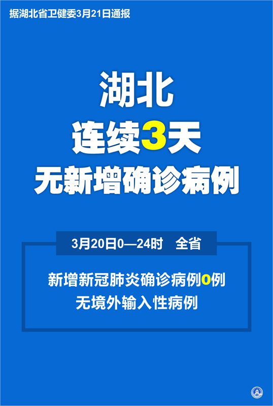 新華社武漢3月21日電(記者侯文坤)據(jù)湖北省衛(wèi)健委21日通報,3月20日0—24時,全省新增新冠肺炎確診病例0例,無境外輸入性病例。