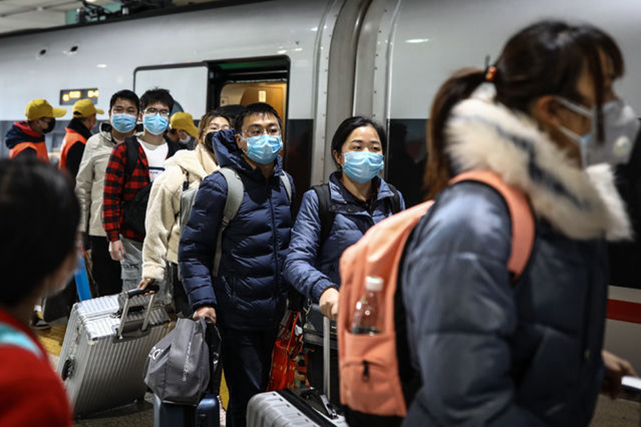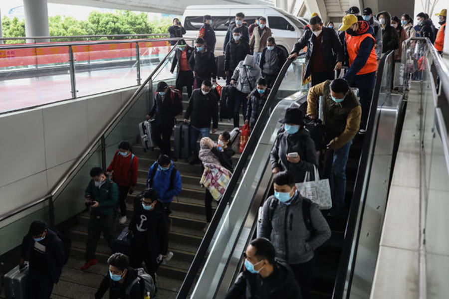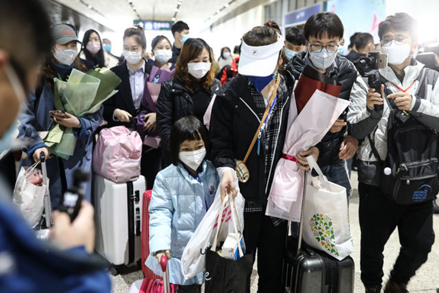 3月28日,武漢火車站,從廣州南到武漢的G1112次列車乘客排隊出站。記者 趙迪/攝