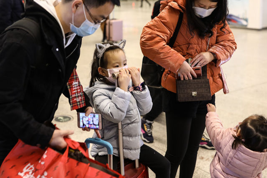 3月28日,武漢火車站,剛剛抵達(dá)的一家人。記者 趙迪/攝