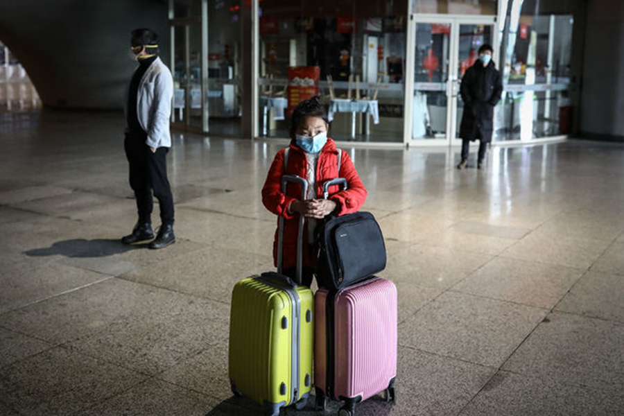 3月28日,武漢火車站,一名小女孩在等待同行的長輩。記者 趙迪/攝