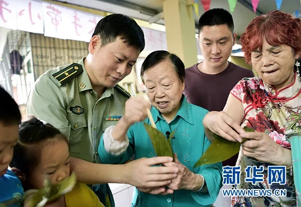 △“田媽媽”與孟召友包粽子過(guò)端午。新華網(wǎng)發(fā)(曾理 攝)