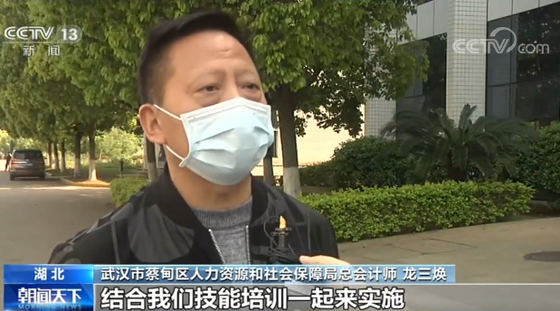 武漢市蔡甸區人力資源和社會保障局總會計師 龍三煥:我們把防疫進行專項培訓,結合我們技能培訓一起來實施。