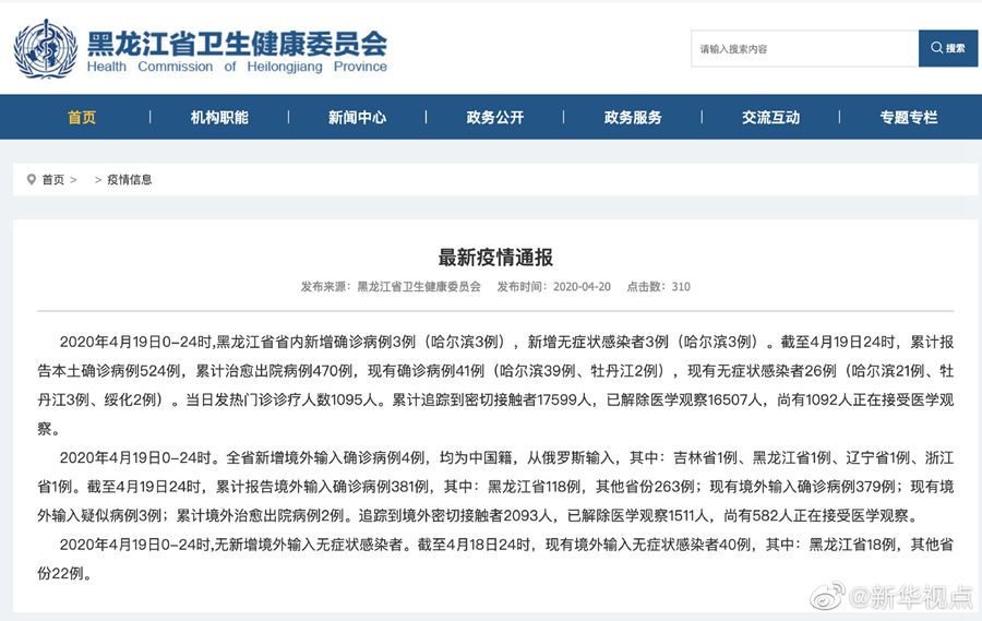4月19日黑龍江省新增境外輸入確診病例4例 省內(nèi)新增確診病例3例-新華網(wǎng)