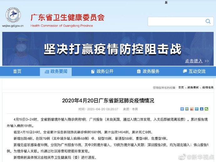 4月19日廣東省新增境外輸入確診病例1例-新華網(wǎng)